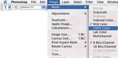 3. Change the image mode from rgb to cmyk (image>mode>cmyk)